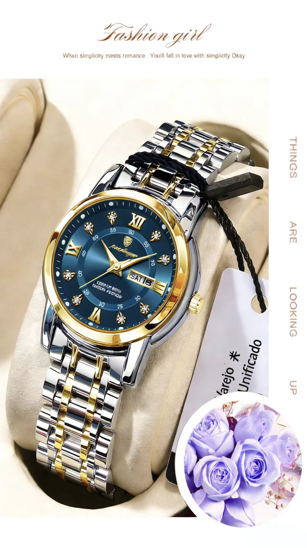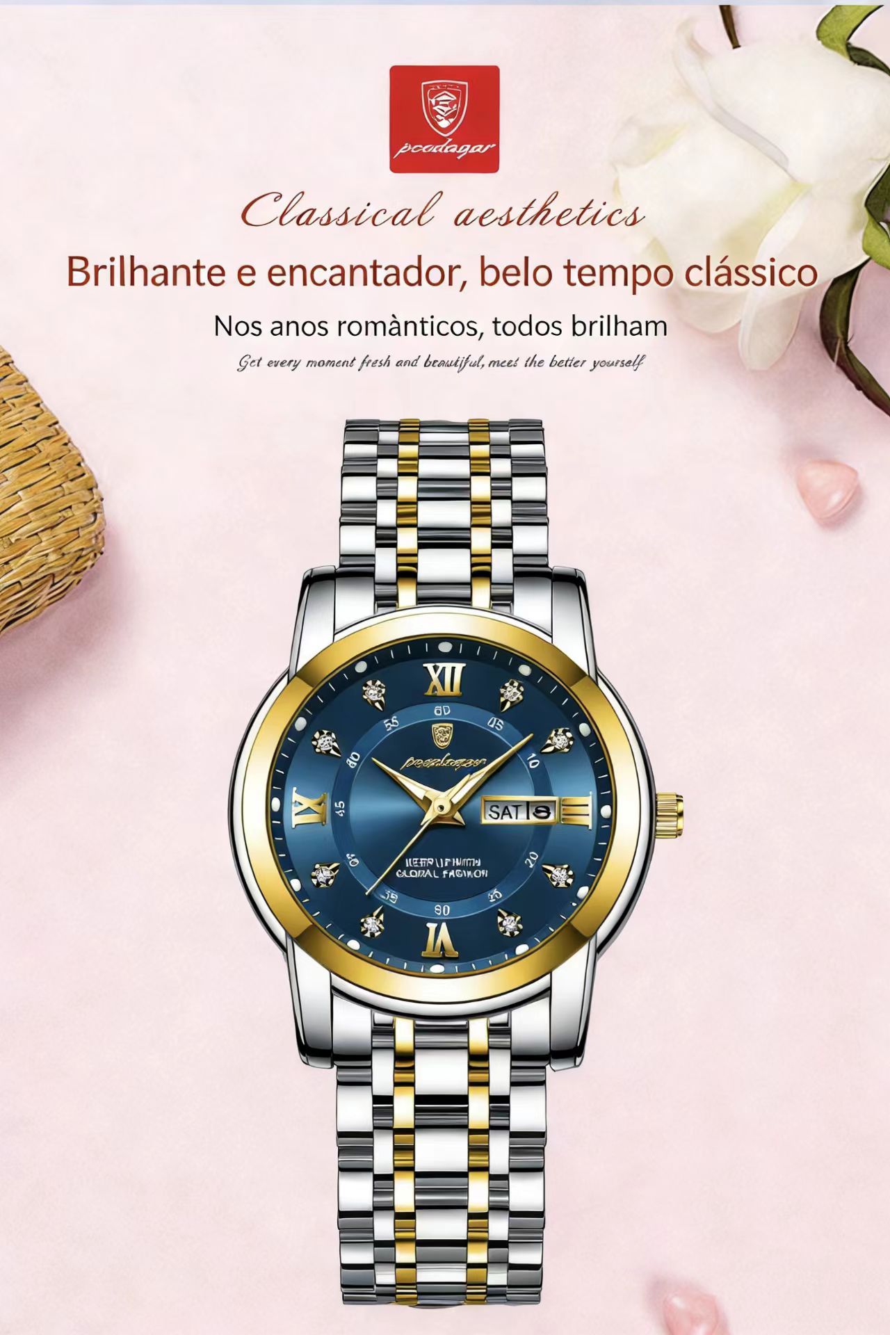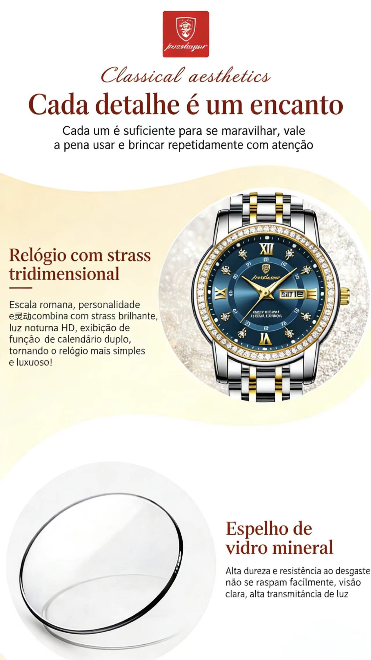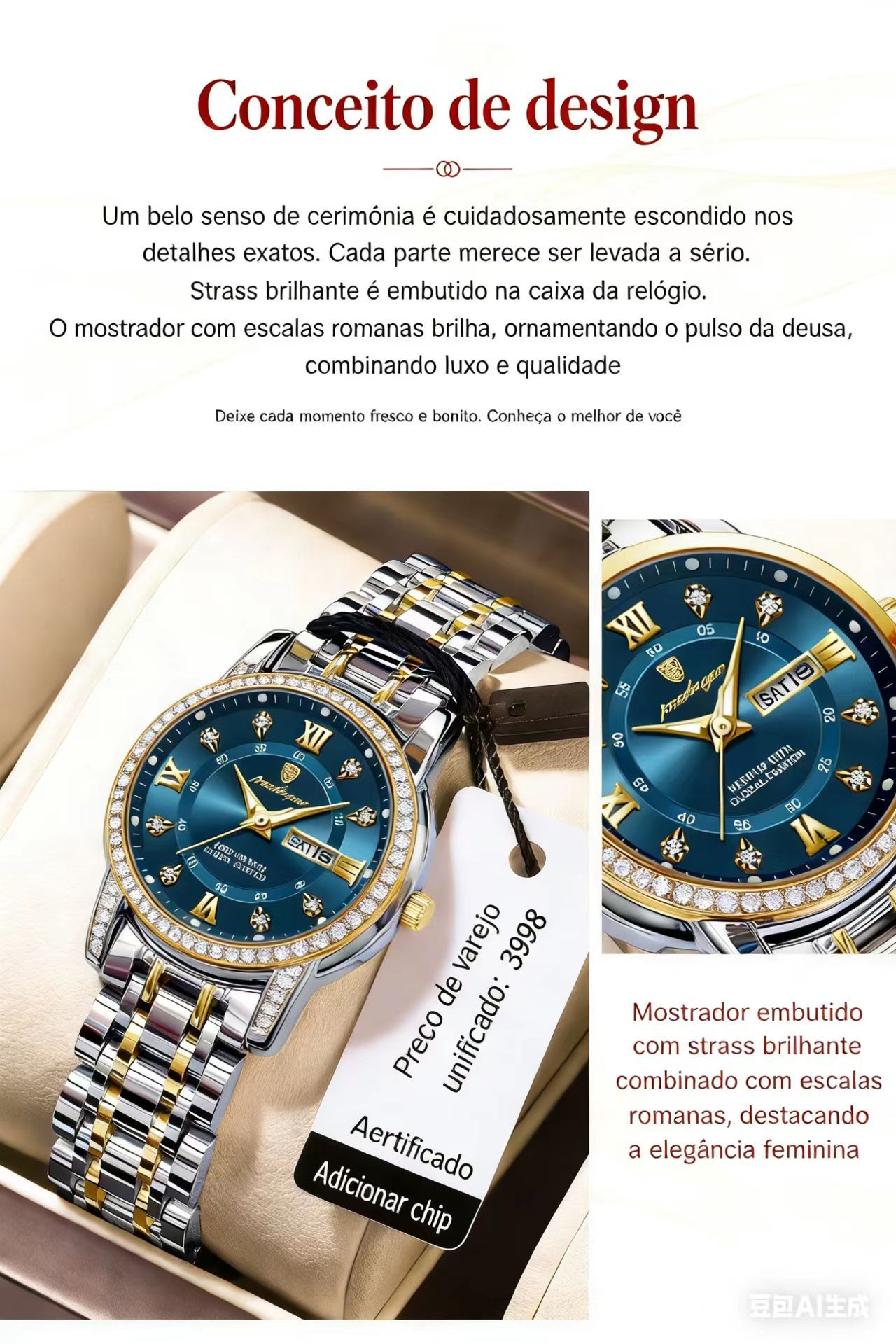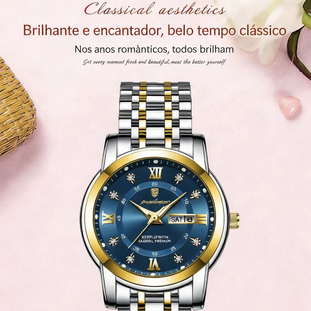 - Design de Luxo: Detalhes em diamantes e acabamento em Aço Inoxidável premium. 💎